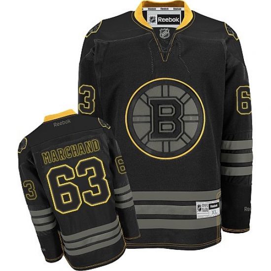 Men's Reebok Boston Bruins #63 Brad Marchand Authentic Black Ice NHL Jersey