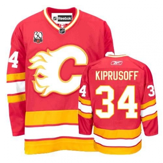 Men's Reebok Calgary Flames #34 Miikka Kiprusoff Authentic Red 30th Patch NHL Jersey