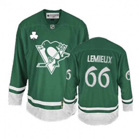 Home>NHL>Pittsburgh Penguins>Mario Lemieux>Men's Reebok Pittsburgh Penguins #66 Mario Lemieux Premier Green St Patty's Day NHL Jersey