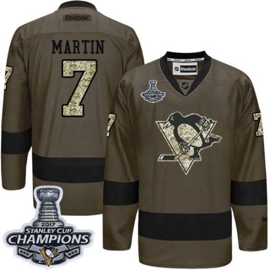 Home>NHL>Pittsburgh Penguins>Paul Martin>Men's Reebok Pittsburgh Penguins #7 Paul Martin Premier Green Salute to Service 2017 Stanley Cup Champions NHL Jersey