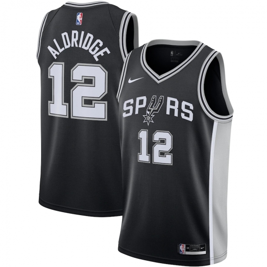 >Men's San Antonio Spurs #12 LaMarcus Aldridge Nike Black 2020-21 Swingman Jersey
