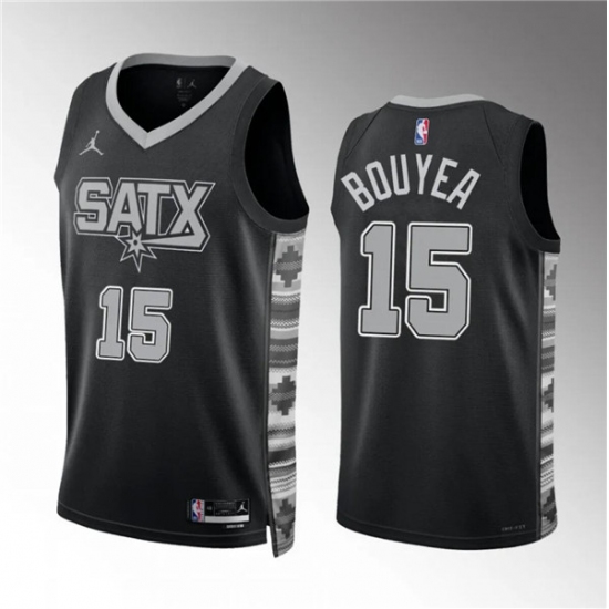 Men's San Antonio Spurs #15 Jamaree Bouyea Black Statement Edition Stitched Basketball Jersey