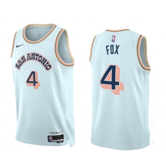>Men's San Antonio Spurs #4 DeAaron Fox Light Blue 2024-25 City Edition Stitched Basketball Jersey