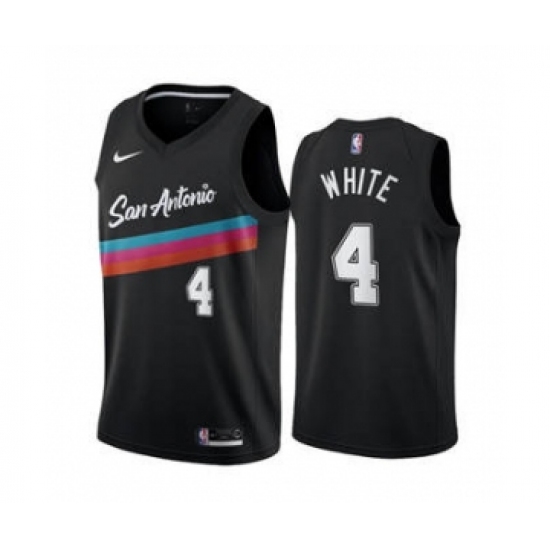>Men's San Antonio Spurs #4 Derrick White Black City Edition Fiesta 2020-21 Stitched Basketball Jersey