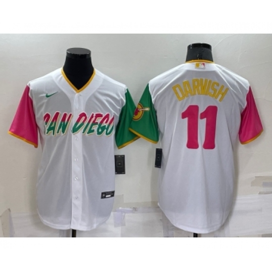 >Men's San Diego Padres #11 Yu Darvish White 2022 City Connect Cool Base Stitched Jersey