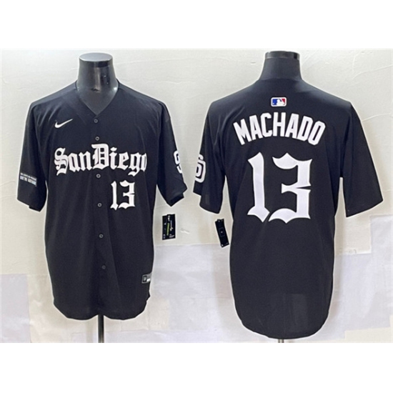 Men's San Diego Padres #13 Manny Machado Black 2023 Cool Base Stitched Jersey 1