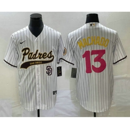 Men's San Diego Padres #13 Manny Machado White Pinstripe 2023 City Connect Cool Base Stitched Jersey 1