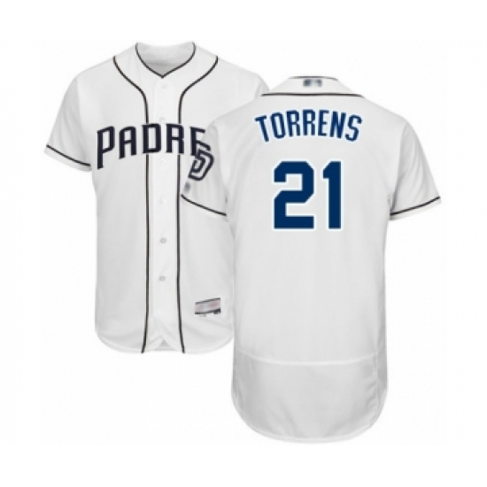 >Men's San Diego Padres #21 Luis Torrens White Home Flex Base Authentic Collection Baseball Player Jersey