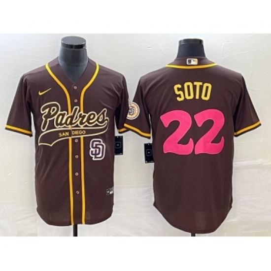 >Men's San Diego Padres #22 Juan Soto Brown NEW 2023 City Connect Cool Base Stitched Jersey