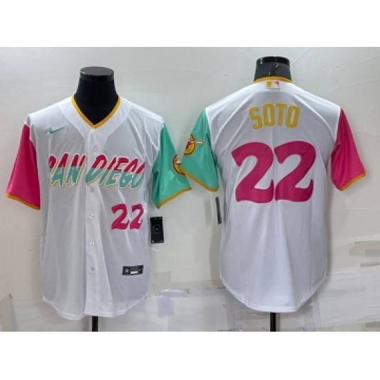 Men's San Diego Padres #22 Juan Soto Number White 2022 City Connect Cool Base Stitched Jersey