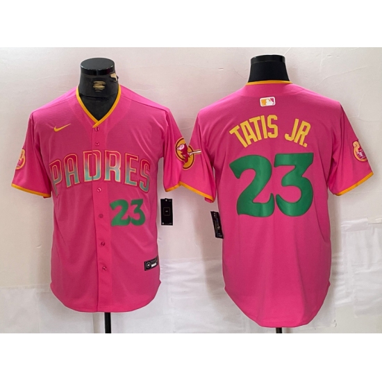 >Men's San Diego Padres #23 Fernando Tatis Jr. Pink Cool Base Stitched Baseball Jerseys