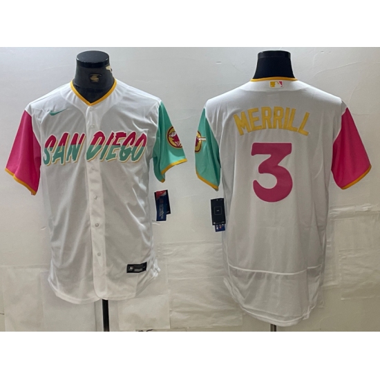 Men's San Diego Padres #3 Jackson Merrill Number White 2024 City Connect Flex Base Stitched Jersey