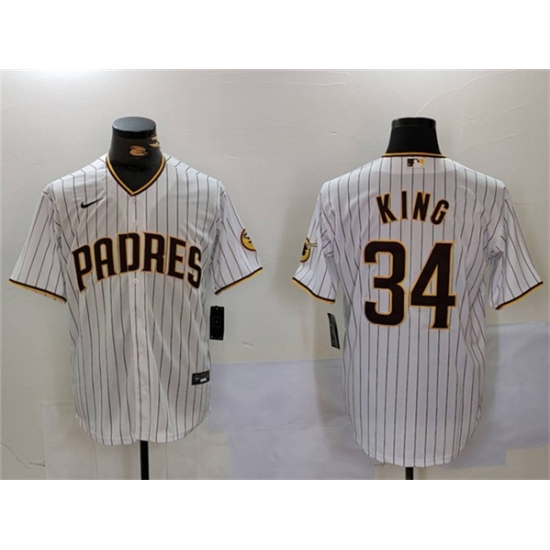 >Men's San Diego Padres #34 Michael King White Cool Base Stitched Baseball Jersey