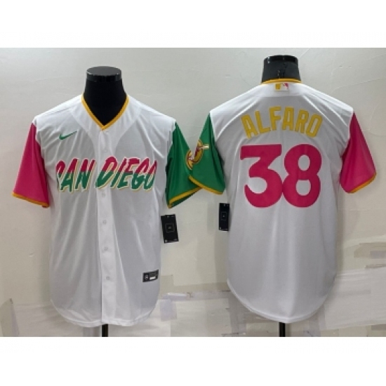 >Men's San Diego Padres #38 Jorge Alfaro White 2022 City Connect Cool Base Stitched Jersey