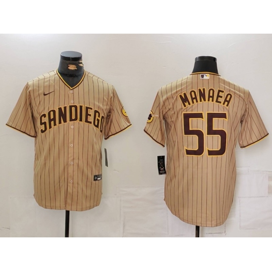 >Men's San Diego Padres #55 Sean Manaea Khaki Cool Base Stitched Jersey