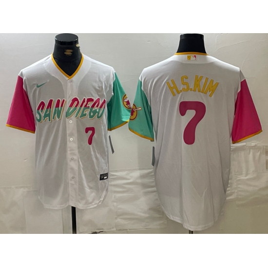 >Men's San Diego Padres #7 Ha Seong Kim Number White 2023 City Connect Cool Base Stitched Jersey