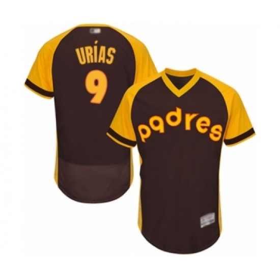 >Men's San Diego Padres #9 Luis Urias Brown Alternate Cooperstown Authentic Collection Flex Base Baseball Player Jersey