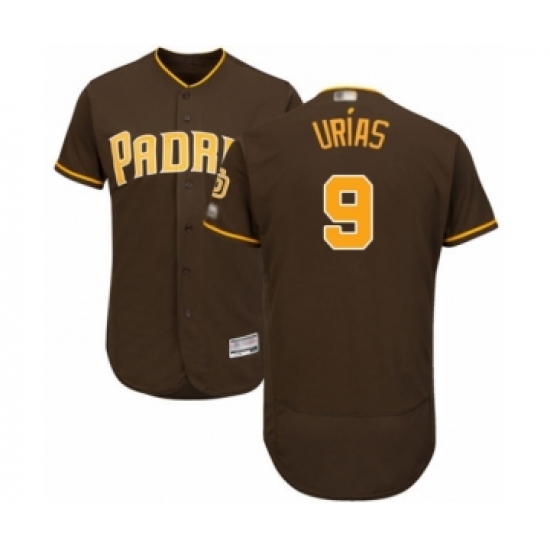 >Men's San Diego Padres #9 Luis Urias Brown Alternate Flex Base Authentic Collection Baseball Player Jersey