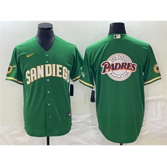 Men's San Diego Padres Green Team Big Logo Cool Base Stitched Baseball Jersey 001