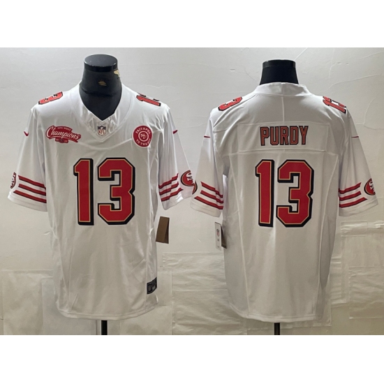 Men's San Francisco 49ers #13 Brock Purdy White 2023 FUSE NFC West Champions Throwback Stitched Jersey