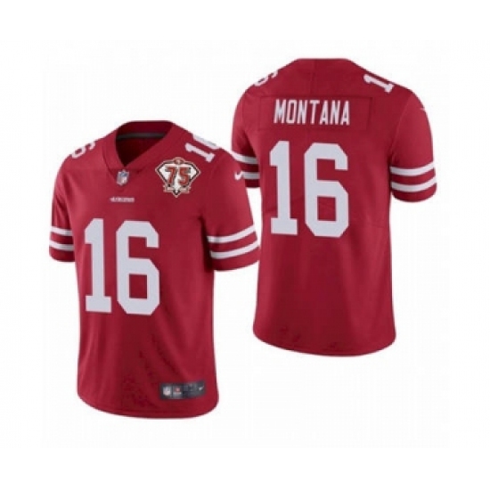 Men's San Francisco 49ers #16 Joe Montana Red 2021 75th Anniversary Vapor Untouchable Limited Jersey
