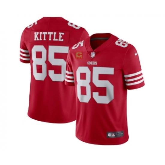 >Men's San Francisco 49ers 2022 #85 George Kittle Red New Scarlet With 4-star C Patch Vapor Untouchable Limited Stitched Football Jersey