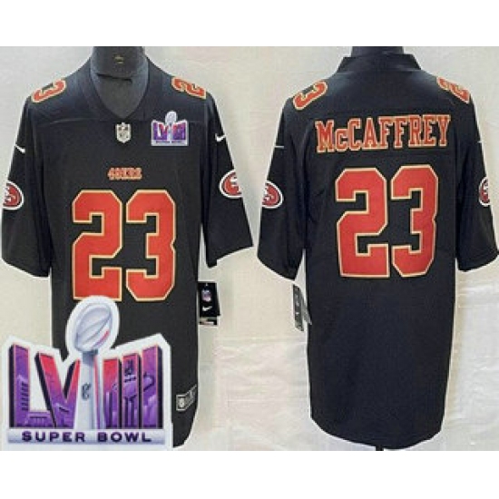 Men's San Francisco 49ers #23 Christian McCaffrey Limited Black Fashion LVIII Super Bowl Vapor Jersey