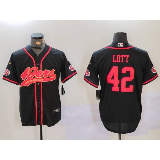 Men's San Francisco 49ers #42 Ronnie Lott Black With Cool Base Stitched Baseball Jersey