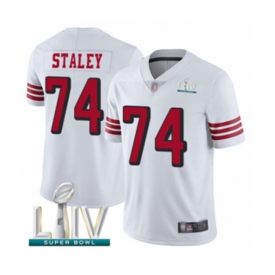 >Men's San Francisco 49ers #74 Joe Staley Limited White Rush Vapor Untouchable Super Bowl LIV Bound Football Jersey