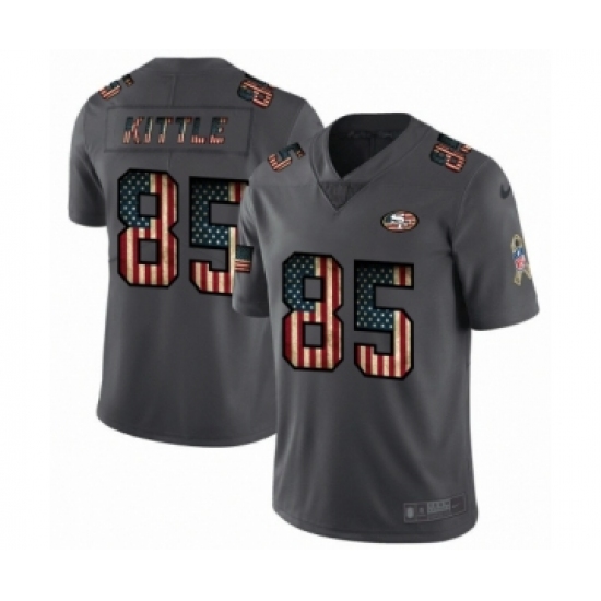 >Men's San Francisco 49ers #85 George Kittle Limited Black USA Flag 2019 Salute To Service Football Jersey
