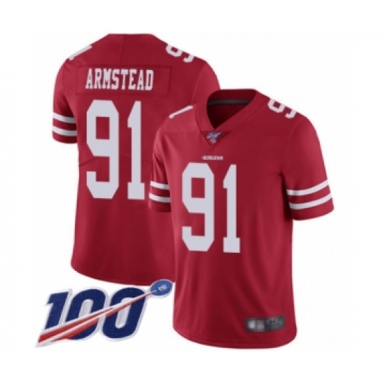 Men's San Francisco 49ers #91 Arik Armstead Red Team Color Vapor Untouchable Limited Player 100th Season Football Jersey