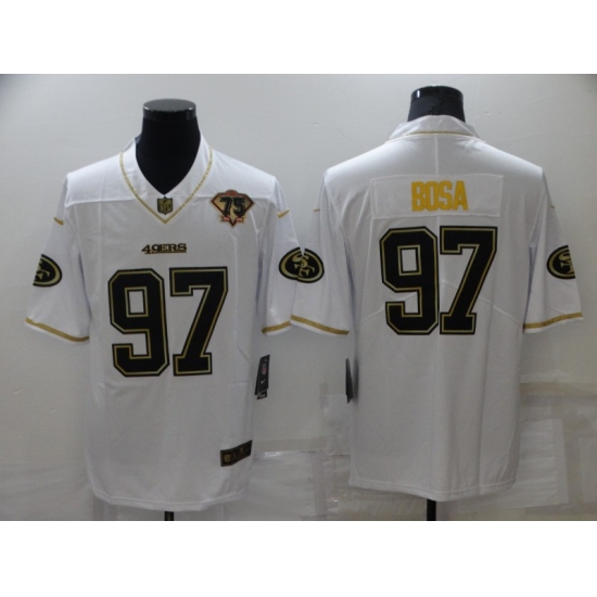 Men's San Francisco 49ers #97 Nick Bosa Nike White-Gold Limited Throwback Jersey