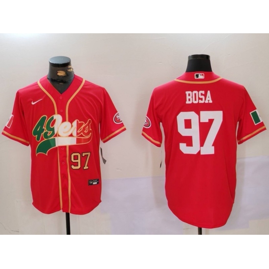 Men's San Francisco 49ers #97 Nick Bosa Red With Cool Base Stitched Baseball Jerseys