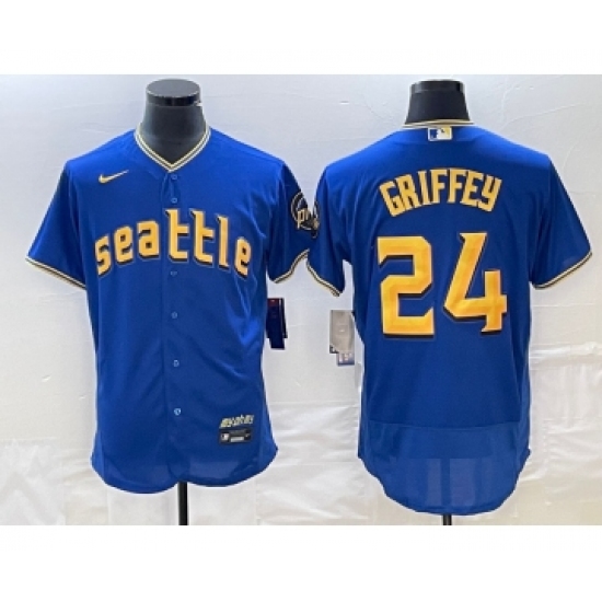 Men's Seattle Mariners #24 Ken Griffey Blue 2023 City Connect Flex Base Stitched Jersey