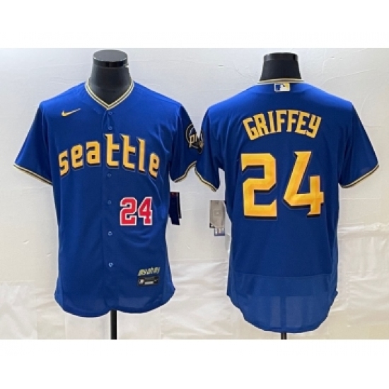 Men's Seattle Mariners #24 Ken Griffey Number Blue 2023 City Connect Flex Base Stitched Jersey