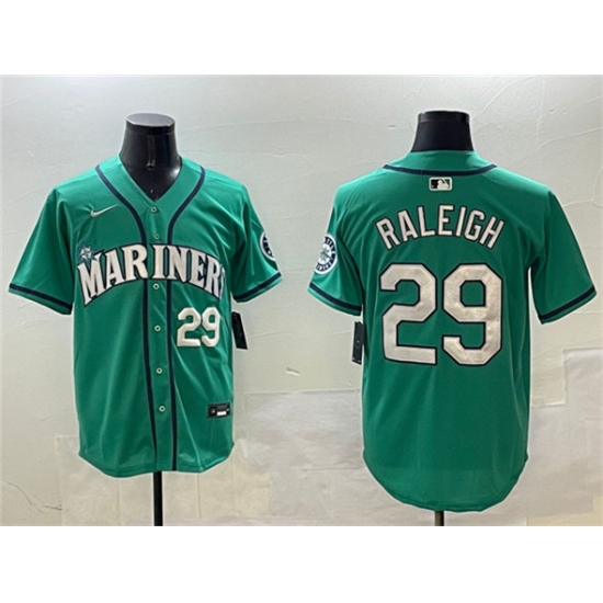 Men's Seattle Mariners #29 Cal Raleigh Aqua Limited Stitched jersey