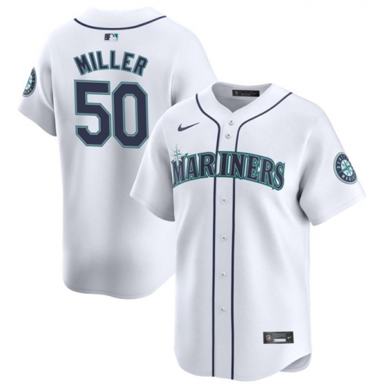 >Men's Seattle Mariners #50 Bryce Miller White Home Limited Stitched jersey