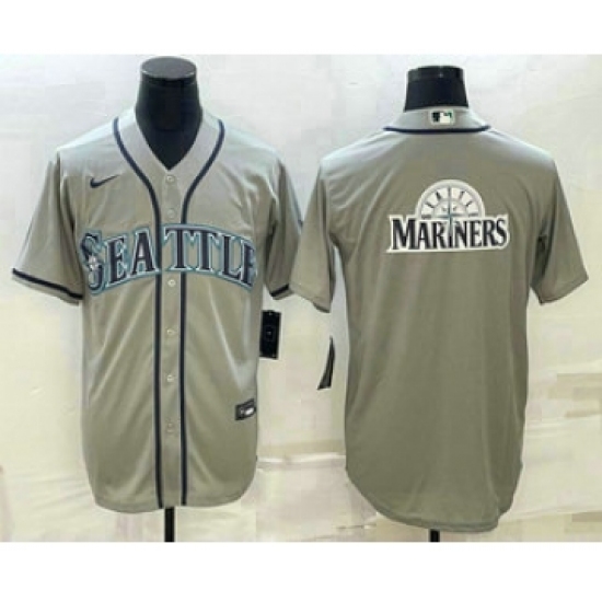 >Men's Seattle Mariners Big Logo Gray Stitched MLB Cool Base Jersey