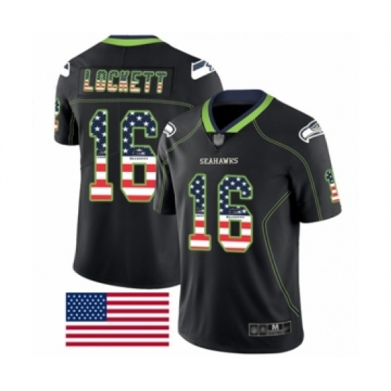 Men's Seattle Seahawks #16 Tyler Lockett Limited Black Rush USA Flag Football Jersey