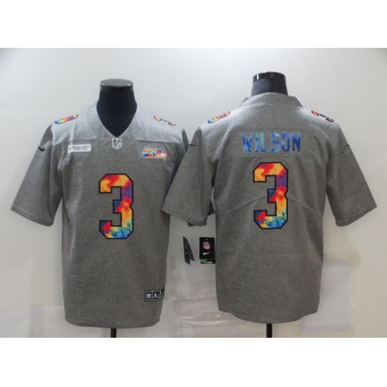 >Men's Seattle Seahawks #3 Russell Wilson Gray Rainbow Version Nike Limited Jersey