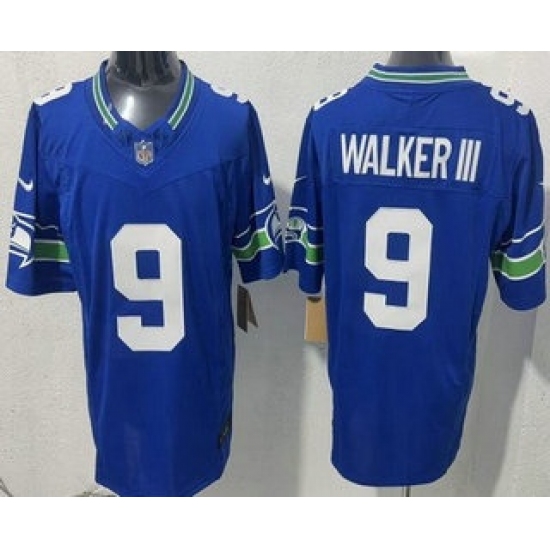 Men's Nike Seattle Seahawks #9 Kenneth Walker III Royal 2023 F.U.S.E. Vapor Limited Throwback Stitched Jersey