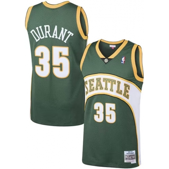 >Men's Seattle Supersonic #35 Kevin Durant Green Hardwood Classics Revolution Jerseys