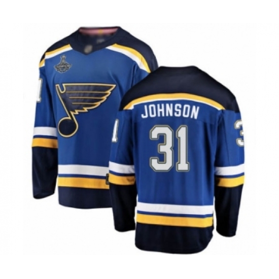 >Men's St. Louis Blues #31 Chad Johnson Fanatics Branded Royal Blue Home Breakaway 2019 Stanley Cup Champions Hockey Jersey