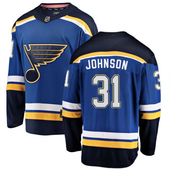 >Men's St. Louis Blues #31 Chad Johnson Fanatics Branded Royal Blue Home Breakaway NHL Jersey