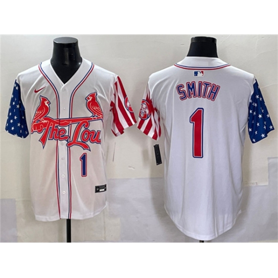 Men's St. Louis Cardinals #1 Ozzie Smith White Independence Day Vapor Premier Limited Stitched Baseball Jersey