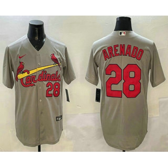 >Men's St Louis Cardinals #28 Nolan Arenado Number Grey Stitched Cool Base Nike Jersey