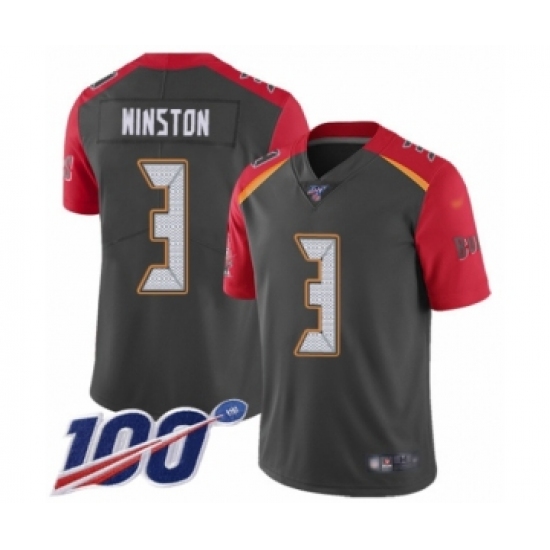 >Men's Tampa Bay Buccaneers #3 Jameis Winston Limited Gray Inverted Legend 100th Season Football Jersey