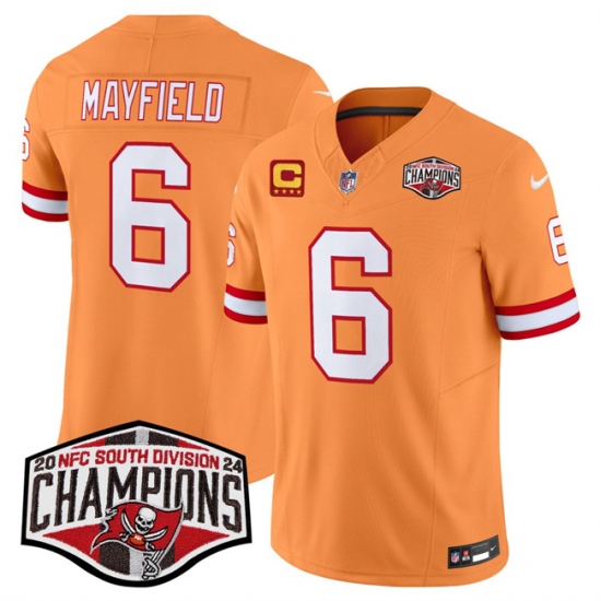 Men's Tampa Bay Buccaneers #6 Baker Mayfield Orange F.U.S.E. 2024 NFC South Champions With 4-Star C Limited Stitched Jersey