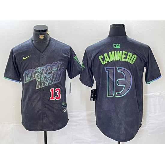 Men's Tampa Bay Rays #13 Junior Caminero Number Charcoal 2024 City Connect Limited Stitched Jerseys