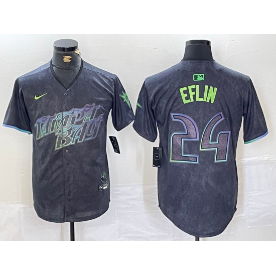 >Men's Tampa Bay Rays #24 Zach Eflin Charcoal 2024 City Connect Limited Cool Base Jersey